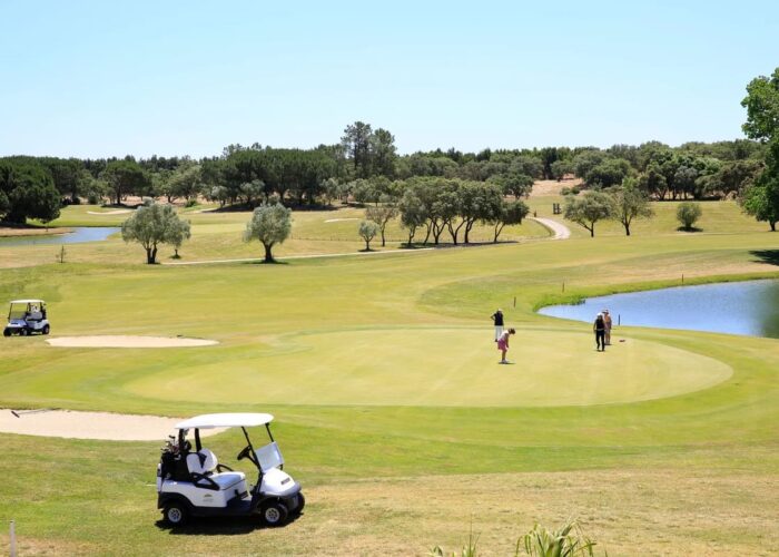 Situato a pochi chilometri da Lisbona, Montado Golf è un campo 18 buche par 72 di circa 6.366 metri, caratterizzato da un paesaggio unico: fairway immersi tra querce da sughero, vigneti e una natura rigogliosa. Il layout è armonioso e molto apprezzato per la varietà: laghi, corsi d’acqua e buche disegnate con creatività, tra le quali spicca la buca 18, con green “su isola” — una conclusione da brivido per ogni round. Il campo è conosciuto come uno dei più eleganti e competitivi del Portogallo, perfetto sia per gare ufficiali sia per vacanze golfistiche rilassate, grazie al mix tra natura, tranquillità e sfida tecnica.